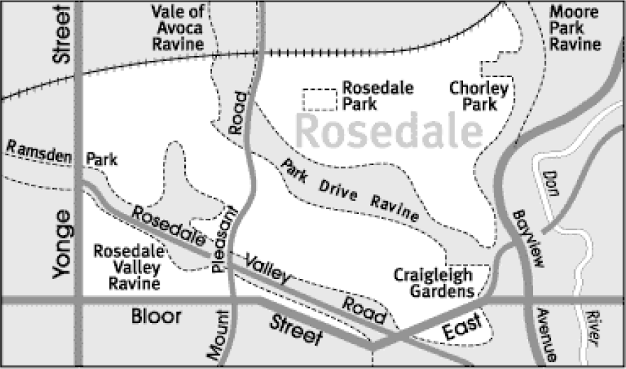 For over one hundred years Rosedale has held the distinction of being Toronto’s most fashionable address. Many of Toronto’s wealthiest and most prominent citizens reside in the Rosedale neighbourhood. Rosedale is unique in that it is surrounded by beautiful ravines and parkland that make you feel as if you are far away from the city, while in reality Rosedale is just a few minutes from Toronto’s major business, entertainment, and shopping districts.